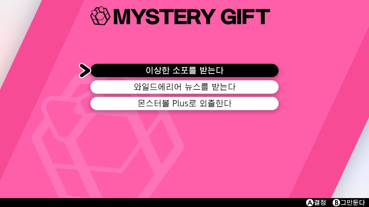 조기구입 특전으로 배포되는 특별한 나옹은 스타팅 포켓몬을 고른 이후 시점부터 받아볼 수 있으며, 그 이후에는 X 버튼을 이용하여 메뉴로 들어가서 [이상한 소포]를 선택하고 미스터리 기프트로 이동한 뒤 [이상한 소포를 받는다]를 클릭해주시면 됩니다.